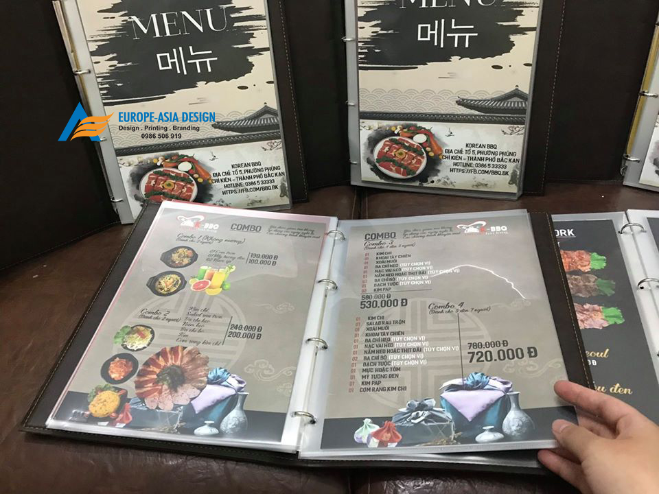 Menu hay còn gọi là thực đơn nhà hàng khách sạn chính là bước thứ 2 sau bộ nhận diện thương hiệu nhà hàng. Nhà hàng có nhiều món ăn phong phú, thực đơn cụ thể ra sao giá cả như nào đã được tập hợp đầy đủ vào cuốn menu. Cuốn Menu được xây dựng tỉ mỉ, chi tiết cho từng món ăn từ hình ảnh, đến gia vị thậm chí giá trị dinh dưỡng, rồi giá thành để thực khách có thể chủ động khi gọi món.