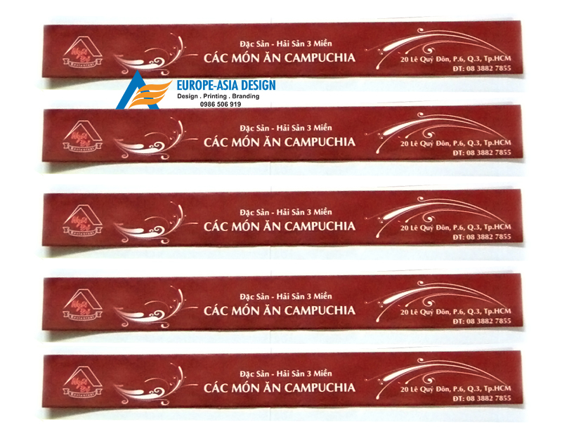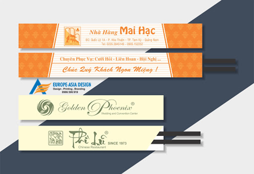 Với dịch vụ của thiết kế in ấn Á Âu cùng đội ngũ các họa sĩ thiết kế đầy kinh nghiệm và sáng tạo, chúng tôi sẽ giúp bạn sở hữu một bộ vỏ đũa độc đáo, ấn tượng, xứng tầm với đẳng cấp nhà hàng của bạn.