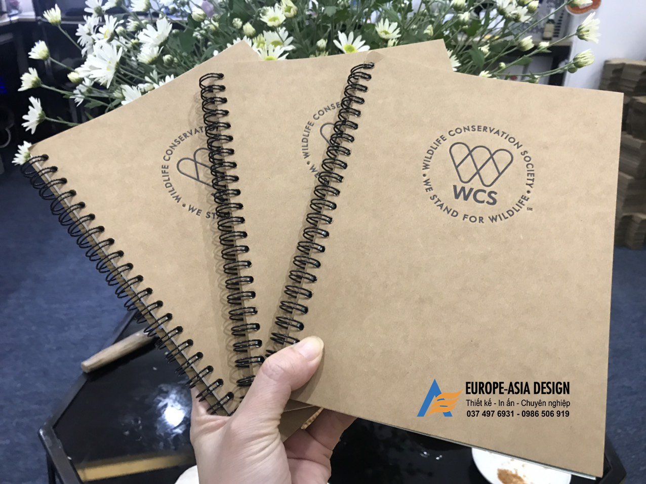 - Gia công: Gáy sổ tay thường dùng Lò xo hoặc gáy còng Inox tùy yêu cầu và độ dày của trang. Bìa cán bóng hoặc mờ, sau đó có thể in hoặc ép kim cho đẹp đẽ nâng cao tính thẩm mỹ.